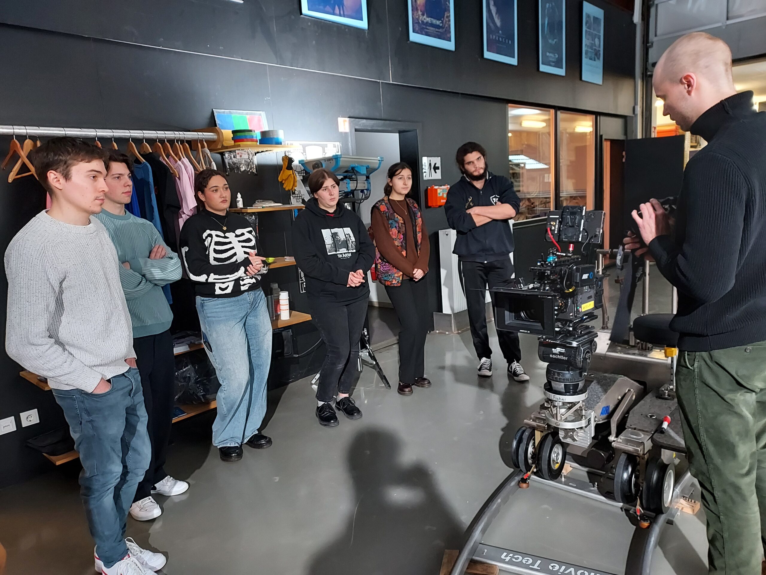 Les étudiant.e.s ont été chaleureusement accueilli.e par Steffen Dietter, Directeur de l’agence ARRI Rental Luxembourg, et par le Directeur de la photographie Anselm Havu.