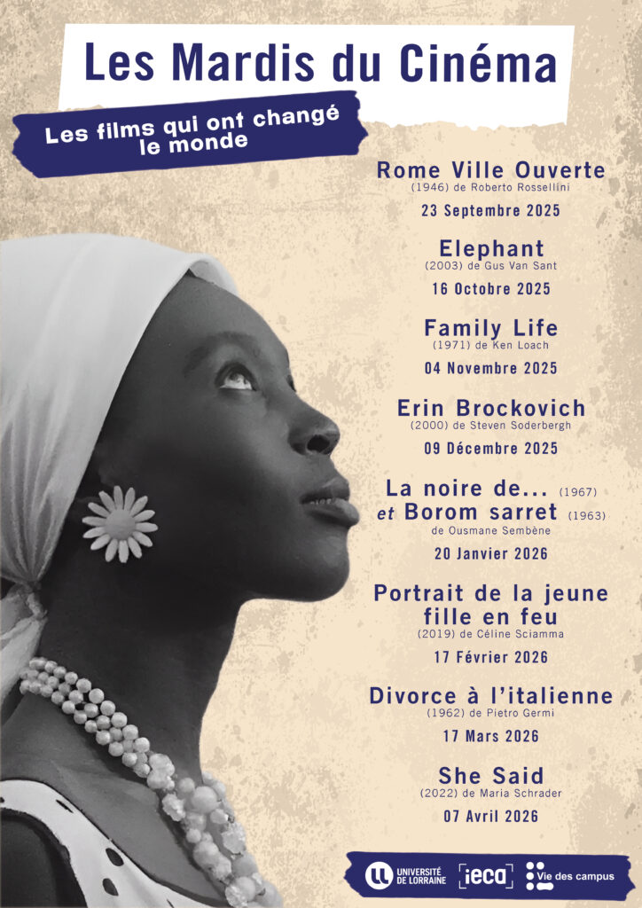 « Depuis ses débuts, le cinéma s’est fait le reflet des changements historiques, politiques et sociaux. A travers un cycle de 8 films, les séances du ciné-club de l’IECA propose pour son cycle 2025-2026, un panorama des films d’hier à aujourd’hui qui ont saisi, le plus souvent à chaud, certains des moments les plus marquants de l’histoire du XXe et du XXIe siècle. » Aurore Renaut, directrice de l’IECA et maîtresse de conférence.