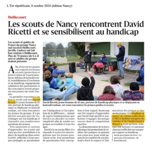 « Résilience innée : un livre de David Riccetti sur le handicap et la résilience » – L’Est Républicain, le 16 février 2025 (édition Nancy)